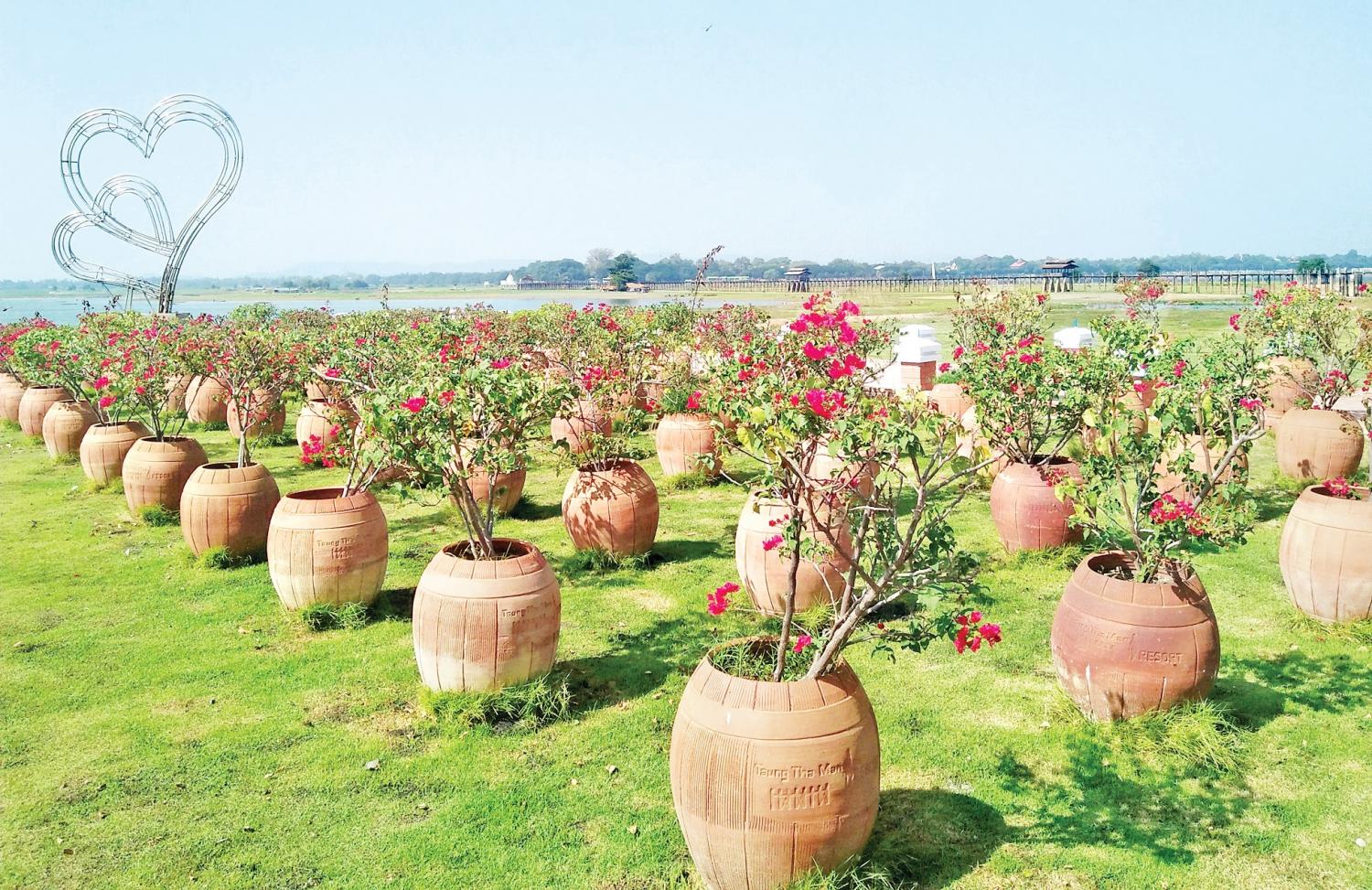ကိုဗစ်အလွန်ကာလတွင် ခရီးသွားများအား ဆွဲဆောင်နိုင်ရန် ရည်ရွယ်၍ မန္တလေးမြို့ ဦးပိန်တံတားနှင့် တောင်သမန်အင်းအရှေ့တောင်ဘက်ရှိ ရွာသစ် ကျေးရွာအနီးတွင် စက္ကူပန်းနန်းတော်အပန်းဖြေဥယျာဉ်ကို စက္ကူပန်း ပင်ပေါင်း တစ်သိန်းကျော်ဖြင့် ပြင်ဆင်ဆောင်ရွက်လျက်ရှိကြောင်း အဆိုပါ ပန်းနန်းတော် ဥယျာဉ် မန်နေဂျာ ဦးစိုးဝင်းအောင်က ပြောသည်။