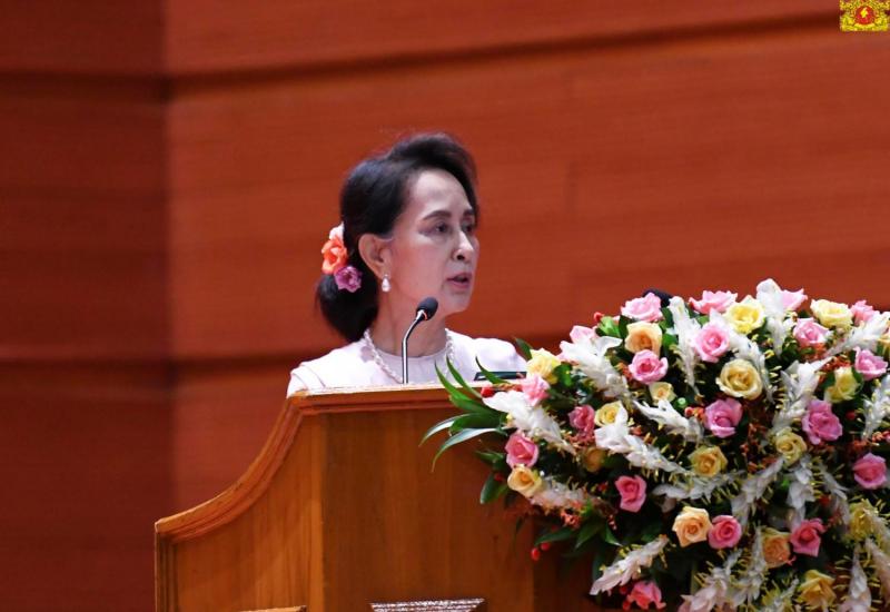 ပြည်ထောင်စုငြိမ်းချမ်းရေး ညီလာခံ-(၂၁)ရာစုပင်လုံ စတုတ္ထအစည်းအဝေး ညီလာခံ တတိယနေ့ကို ယနေ့နံနက် ၁၀ နာရီတွင် နေပြည်တော်ရှိ မြန်မာအပြည်ပြည်ဆိုင်ရာ ကွန်ဗင်း ရှင်းဗဟိုဌာန(၂)၌ ကျင်းပရာ အမျိုးသားပြန်လည်သင့်မြတ်ရေးနှင့် ငြိမ်းချမ်းရေး ဗဟိုဌာန ဥက္ကဋ္ဌ နိုင်ငံတော်၏အတိုင်ပင်ခံပုဂ္ဂိုလ်ဒေါ်အောင်ဆန်းစုကြည် တက်ရောက်၍ ကျေးဇူးတင် စကား ပြောကြားသည်။