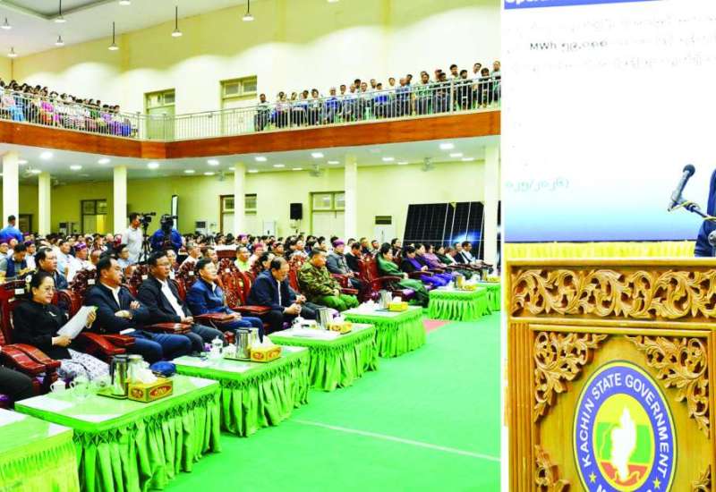 လျှပ်စစ်နှင့်စွမ်းအင်ဖွံ့ဖြိုးရေးကော်မရှင်ဥက္ကဋ္ဌ နိုင်ငံတော်သမ္မတရုံးဝန်ကြီးဌာန(၁) ပြည်ထောင်စုဝန်ကြီး ဦးတင်အောင်စန်း ဦးဆောင်သည့် ကိုယ်စားလှယ်အဖွဲ့သည် ယနေ့နံနက်ပိုင်းတွင် မြစ်ကြီးနားတက္ကသိုလ် ဘွဲ့နှင်းသဘင်ခန်းမ၌ ဒေသခံပြည်သူများနှင့်တွေ့ဆုံပြီး ဧရာဝတီ မြစ်ဆုံ-မြစ်ညာ စီမံကိန်းနှင့်စပ်လျဉ်း၍ ရှင်းလင်းဆွေးနွေးသည်။