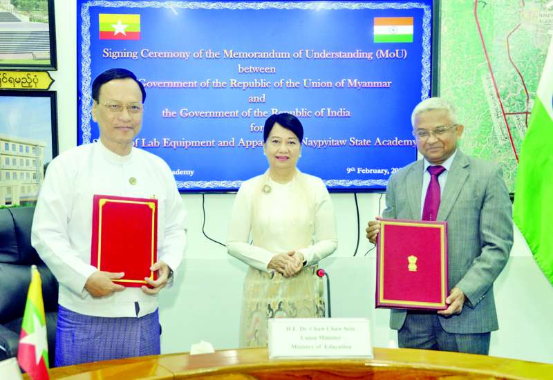 ပြည်ထောင်စုသမ္မတ မြန်မာနိုင်ငံတော်အစိုးရနှင့် အိန္ဒိယသမ္မတနိုင်ငံ အစိုးရတို့အကြား Naypyitaw State Academy တွင် ဓာတ်ခွဲခန်းသုံးပစ္စည်းကိရိယာများ ထောက်ပံ့နိုင်ရေးနားလည်မှုစာချွန်လွှာ (MoU) လက်မှတ်ရေးထိုးခြင်း အခမ်းအနားကို ယနေ့နံနက် ၉‌ နာရီတွင် Naypyitaw State Academy အစည်းအဝေးခန်းမ၌ ကျင်းပသည်။