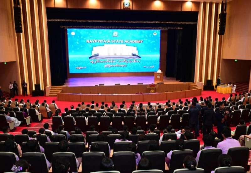 နေပြည်တော်ကောင်စီနယ်မြေ၊ ဇမ္ဗူသီရိမြို့နယ်ရှိ Naypyitaw State Academy (ဘွဲ့နှင်းသဘင်ခန်းမ) ဘက်စုံသုံးခန်းမဖွင့်ပွဲအခမ်းအနားကို ယနေ့နံနက်ပိုင်းတွင် ကျင်းပပြုလုပ်ရာ ပြည်ထောင်စုသမ္မတမြန်မာနိုင်ငံတော်ယာယီသမ္မတ နိုင်ငံတော်လုံခြုံရေးနှင့်အေးချမ်းသာယာရေးကော်မရှင်ဥက္ကဋ္ဌ ဗိုလ်ချုပ်မှူးကြီး မင်းအောင်လှိုင် တက်ရောက်ဖွင့်လှစ်ပေးပြီး အမှာစကားပြောကြားသည်။