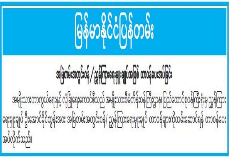 ရန်ကုန်မြို့နှင့် မန္တလေးမြို့အတွက် ရည်ညွှန်းလက်ကားဈေးနှုန်းများနှင့် ပြည်ထောင်စုနယ်မြေ နေပြည်တော်၊ တိုင်းဒေသကြီး/ပြည်နယ် မြို့တော်များအတွက် ရည်ညွှန်းလက်လီဈေးနှုန်းများ