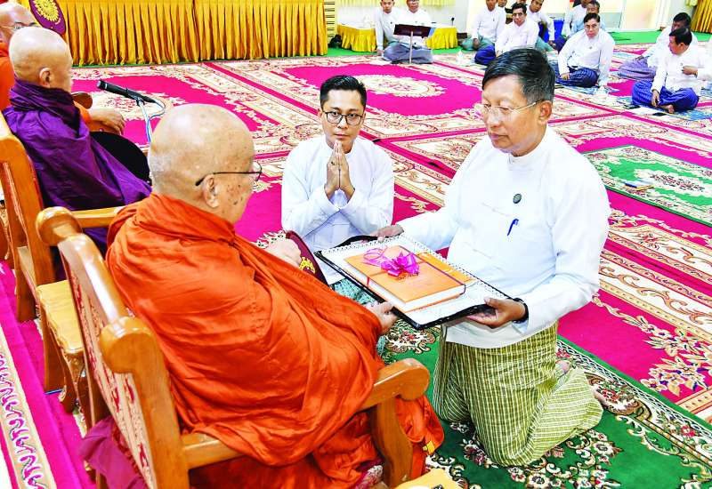 နိုင်ငံတော်သံဃမဟာနာယကအဖွဲ့ဆရာတော်ကြီးများ၏ ဩဝါဒနှင့်အညီ ပုံနှိပ်ပြီးစီးသော ပိဋကသုံးပုံအဋ္ဌကထာကွန်ပျူတာစာမူကျမ်းစာအုပ်များ ဆက်ကပ်လှူဒါန်းပွဲကို ယနေ့ မွန်းလွဲ ၂ နာရီတွင် နေပြည်တော် ဥပ္ပါတသန္တိစေတီတော်ပရိဝုဏ်အတွင်းရှိ သာသနာ့မဟာဗိမာန်တော်ကြီး ဆွမ်းစားကျောင်းဆောင်၌ ကျင်းပရာ ပုဗ္ဗသီရိမြို့နယ် သီရိမင်္ဂလာဝဲကြီး ပရိယတ္တိစာသင်တိုက်ပဓာနနာယက ဆရာတော် ဘဒ္ဒန္တအာဒိစ္စဝံသအမှူးပြုသော ဆရာတော်များ ကြွရောက်ချီးမြှင့်ကြပြီး သာသနာရေးနှင့်ယဉ်ကျေးမှုဝန်ကြီးဌာန ပြည်ထောင်စုဝန်ကြီး ဦးတင်ဦးလွင်၊ နေပြည်တော်ကောင်စီဥက္ကဋ္ဌ ဦးသန်းထွန်းဦး၊ ဒုတိယဝန်ကြီး ဦးအေးထွန်းနှင့် ဒေါ်နုမြဇံ၊ နေပြည်တော်ကောင်စီဝင်များ၊ ဌာနဆိုင်ရာတာဝန်ရှိသူများ၊ ဥပ္ပါတသန္တိစေတီတော်ဘဏ္ဍာတော်ထိန်းဂေါပကအဖွဲ့ဝင်နှင့် အလှူရှင်များ တက်ရောက်ကြည်ညိုကြသည်။