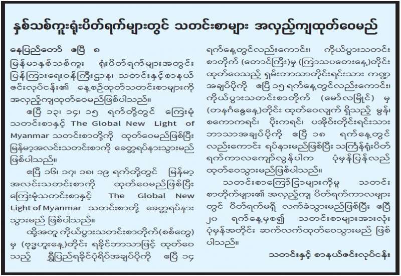 နိုင်ငံတော်၏ အုပ်ချုပ်မှုယန္တရားပျက်ပြားစေရန်ရည်ရွက်ချက်ဖြင့် နိုင်ငံ့ဝန်ထမ်းများအား CDM လှုပ်ရှားမှုတွင် ပါဝင်စေရန်လှုံ့ဆော်ခြင်း၊ CRPH မတရားအသင်းအား ထောက်ခံသည့် အကြောင်းအရာများ၊ မမှန်သတင်းများအား ဖြန့်ဝေခြင်း၊ နိုင်ငံတော်တည်ငြိမ်အေးချမ်းမှုကို ပျက်ပြားစေပြီး ဆူပူအုံကြွမှုဖြစ်ပေါ်စေရန်နှင့် အများပြည်သူအထိတ်တလန့်ဖြစ်စေရန် အတွက် သွေးထိုးလှုံ့ဆော်မှုများပြုလုပ်ခြင်း၊ Social Pumishment ပြုလုပ်ခြင်းများကို လူမှုကွန်ရက် စာမျက်နှာများတွင် ရည်ရွယ်ချက်ရှိရှိ ဖြင့်ဖော်ပြခြင်းနှင့် ဖြန့်ဝေခြင်းများ ဆောင်ရွက် လျက်ရှိသူ များအား ရာဇသတ်ကြီးပုဒ်မ ၅၀၅-က ဖြင့် အမှုဖွင့်အရေးယူနိုင်ရေး သတင်းထုတ်ပြန် ဆောင်ရွက်လျက်ရှိသည်။