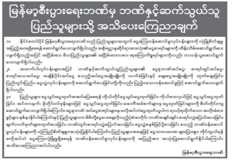 (၂၀၂၁ ခုနှစ်၊ မတ်လ (၃)ရက်နေ့၊ နံနက်(၁၀:၃၀)နာရီအချိန် ထုတ်ပြန်ချက်)