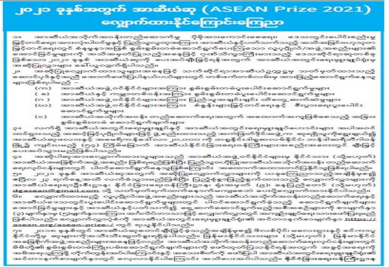 (၂၀၂၁ ခုနှစ်၊ မတ်လ (၁)ရက်နေ့ ညနေ(၄:၀၀)နာရီအချိန် ထုတ်ပြန်ချက်)