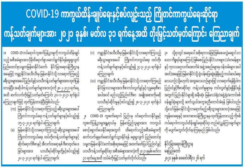 (၂၀၂၁ ခုနှစ်၊ ဖေဖော်ဝါရီလ (၂၇)ရက်နေ့ မွန်းလွဲ (၂:၀၀)နာရီအချိန် ထုတ်ပြန်ချက်)