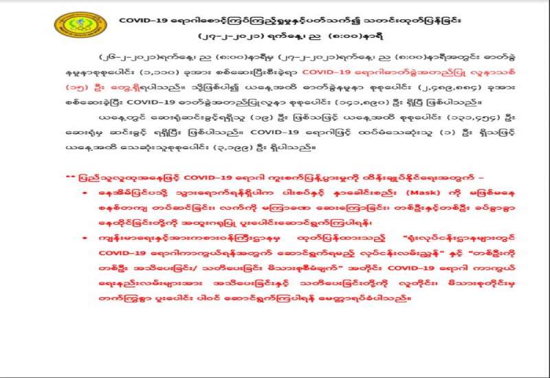 COVID-19 ရောဂါစောင့်ကြပ်ကြည့်ရှုမှုနှင့် ပတ်သက်၍ သတင်းထုတ်ပြန်ခြင်း (27-2-2021, 8:00 PM)