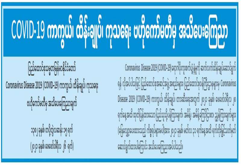 ကိုဗစ် − ၁၉ ကာကွယ်ရေး မပြီးဆုံးသေး ယနေ့ကမ္ဘာပေါ်ရှိ နိုင်ငံများတွင် ကိုဗစ်-၁၉ ကာကွယ်ဆေးထိုးနှံရေး ဦးစားပေး မဆောင်ရွက်နေသည်ကို တွေ့ရသည်။ ကိုဗစ်-၁၉ ရောဂါ ဖြစ်ပွားမှုအခြေအနေမှာ လျော့နည်းကျဆင်းသွားသည်ဆိုသော်လည်း ရောဂါပိုးတွေ့လူနာများ ထပ်မံ မတွေ့ရှိနေဆဲ၊ ဗီဇမျိုးကွဲသစ်များ ထပ်မံတွေ့ရှိနေဆဲဖြစ်၍ ကိုဗစ်-၁၉ ရောဂါ -ကာကွယ်၊ ထိန်းချုပ်၊ ကုသရေးလုပ်ငန်းများကို ပစ်ပယ်ထား၍ ရနိုင်မည်မဟုတ်ပေ။ ရပ်တန့် ထား၍ ရနိုင်မည်မဟုတ်ပေ။ ကိုဗစ်-၁၉ ရောဂါဖြစ်ပွားမှုကြောင့် ကမ္ဘာပေါ်ရှိ လူဦးရေ ၁၁၃ သန်းကျော် ကူးစက်ခံရပြီး လူဦးရေ နှစ်သန်းခွဲကျော် သေဆုံးခဲ့ရသည်။ ရောဂါပြန်လည် ကင်းစင်ကျန်းမာလာသူ လူဦးရေ ၈၉ သန်းခန့် ရှိသည်။ မြန်မာနိုင
