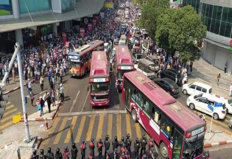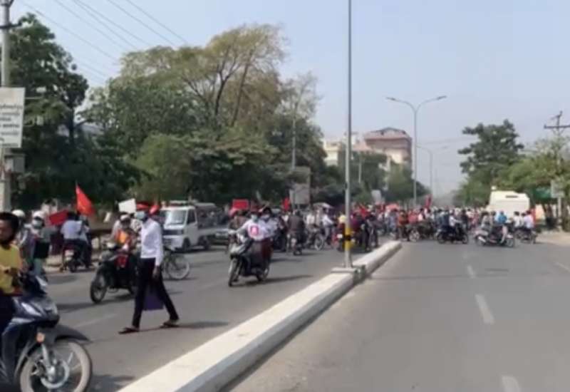 မန္တလေးတိုင်းဒေသကြီး၊ ချမ်းအေးသာစံမြို့နယ်၊ လမ်း(၃၀)(၆၈/၇၀) လမ်းကြားတွင် လူစုလူဝေး ၄၀၀ ကျော်ခန့်သည်လည်းကောင်း၊ မွန်းလွဲပိုင်းတွင် ချမ်းအေးသာစံမြို့နယ်၊ (၃၅/၈၅) လမ်းကြား မြတောင် ကျောင်းအရှေ့တွင် လူစုလူဝေး ၂၅၀ ခန့်သည်လည်းကောင်း၊ (၆၂/၁၀၄) (A) လမ်းထောင့်တွင် အင်အား ၁၀၀ သည်လည်းကောင်း အများပြည်သူသွားလာအသုံးပြုနေကြသည့် လမ်းမများပေါ်တွင် လမ်းပိတ်ဆို့ မှုများ ပြုလုပ်ကာ ကြွေးကြော်သံအမျိုးမျိုး အော်ဟစ်ဆူပူလျက်ရှိကြောင်း သိရသည်။