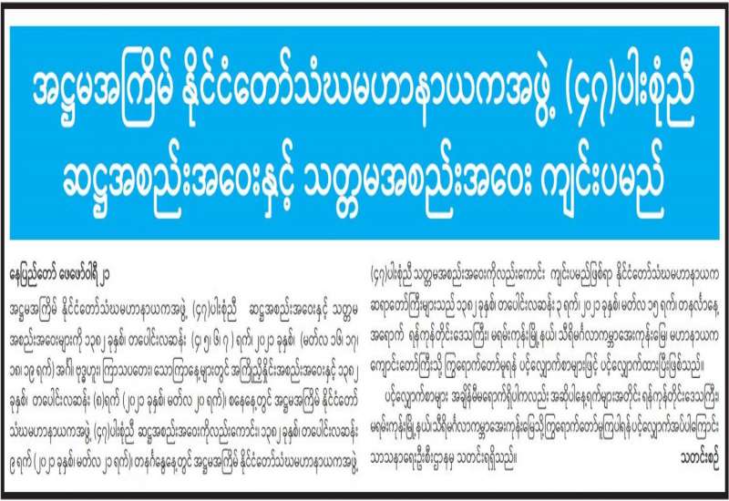 (၂၀၂၁ ခုနှစ်၊ ဖေဖော်ဝါရီလ (၂၂)ရက်နေ့ မွန်းလွဲ (၂:၀၀)နာရီအချိန် ထုတ်ပြန်ချက်)