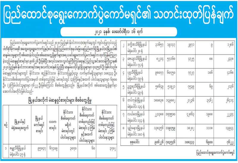 နိုင်ငံတော်နှင့် တပ်မတော်အတွက် အသက်ပေးလှူခဲ့ရသည့် အရာရှိ၊ စစ်သည်များ၏မိသားစုဝင်များ၊ စစ်မှု ထမ်းဟောင်းအဖွဲ့ဝင်များနှင့် မိသားစု ဝင်များ၊ ရဲမှုထမ်းဟောင်းအဖွဲ့ဝင်များ၊ ပြည်သူ့စစ်(ဌာနေ) တပ်ဖွဲ့ဝင်များနှင့် မီးသတ်တပ်ဖွဲ့ဝင်များအတွက် ကိုဗစ် (၁၉ ရောဂါ ကာကွယ်၊ ထိန်းချုပ်၊ ကုသရေးလုပ်ငန်းများ ဆောင်ရွက် နေသည့်ကာလအတွင်း သွားလာ မှုများ ကန့်သတ်ချက်များကြောင့် စားရေးအခက်အခဲမရှိစေရန်ဆန်၊ ဆီ၊ ဆား၊ ပဲ အမယ်လေးမျိုးနှင့် ကိုဗစ်-၁၉ ရောဂါကာကွယ်ရေး အထောက်အကူပြုပစ္စည်းများကို သက်ဆိုင်ရာ တိုင်းစစ်ဌာနချုပ်များ၊ စစ်မှုထမ်းဟောင်းရုံး၊ အိမ်ရာများ၊ တပ်နယ်ခန်းမများ၊ ရဲတပ်ဖွဲ့မှူးရုံးများနှင့် သက်ဆိုင်ရာ ရဲစခန်းများ၌ ပေးအပ်လျက်ရှိသည်။
