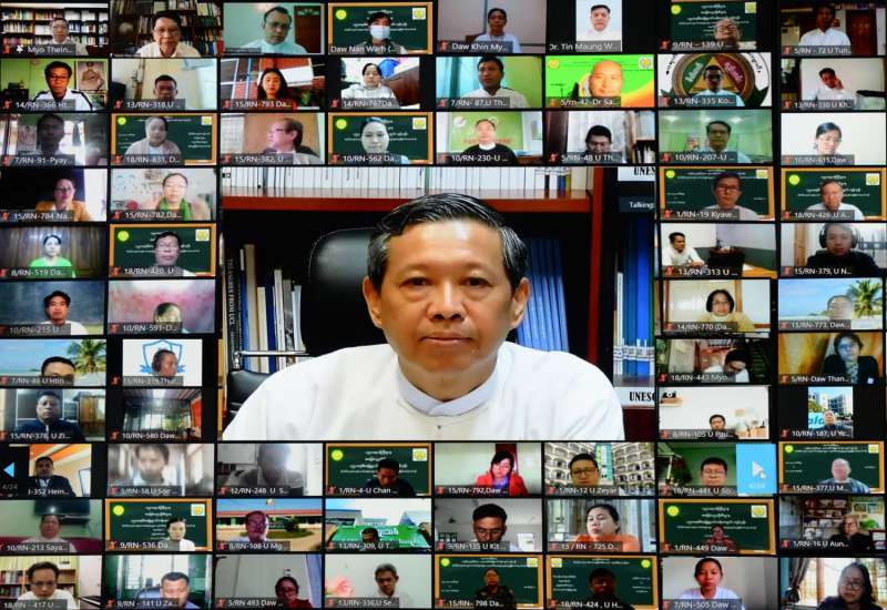မြန်မာနိုင်ငံတက္ကသိုလ်များအတွက် ပတ်ဝန်းကျင်ထိန်းသိမ်းရေးဥပဒေ သင်ရိုးညွှန်းတမ်းများ ရေးဆွဲရေးလုပ်ငန်း စတင်ခြင်း အခမ်းအနားကို ယနေ့နံနက် ၉ နာရီတွင် ဗီဒီယိုကွန်ဖရင့် စနစ်ဖြင့် ကျင်းပသည်။