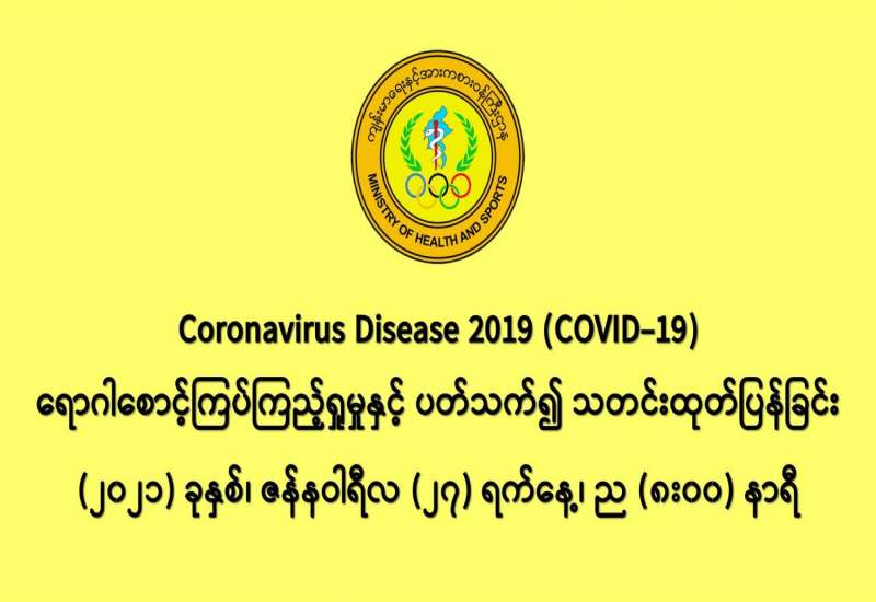 (၂၆-၁-၂၀၂၁)ရက်နေ့၊ ည (၈:၀၀)နာရီမှ (၂၇-၁-၂၀၂၁)ရက်နေ့၊ ည (၈:၀၀)နာရီအတွင်း ဓာတ်ခွဲနမူနာ စုစုပေါင်း (၁၆,၅၅၆)ခုအားစစ်ဆေးပြီးစီးခဲ့ရာ COVID-19 ရောဂါ ာတ်ခွဲအတည် ပြု လူနာသစ် (၄၃၄) ဦး တွေ့ရှိရပါသည်။