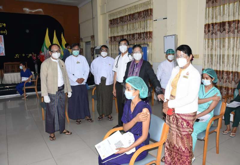 နေပြည်တော်ရှိ ကျန်းမာရေးဝန်ထမ်း စုစုပေါင်း ၃၈၀၀ ကျော်အား ကိုဗစ်-၁၉ ကာကွယ်ဆေး COVISHIELD စတင် ထိုးနှံခြင်းလုပ်ငန်းစဉ်ကို ယနေ့နံနက် ပိုင်းတွင် စတင်ဆောင်ရွက်သည်။
