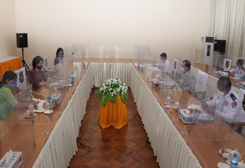 ပဲခူးတိုင်းဒေသကြီးအစိုးရအဖွဲ့ရုံး၊ တော်ဝင်ဟံသာခန်းမ၌ ယမန်နေ့ မွန်းလွဲ ၂ နာရီက ပဲခူးတိုင်းဒေသကြီး ကိုဗစ်-၁၉ ရောဂါ ထိန်းချုပ်ရေးနှင့်အရေးပေါ်တုံ့ပြန်ရေးကော်မတီ လုပ်ငန်းညှိနှိုင်းအစည်းအဝေးအား Online Meeting စနစ်ဖြင့် ကျင်းပပြုလုပ်သည်။