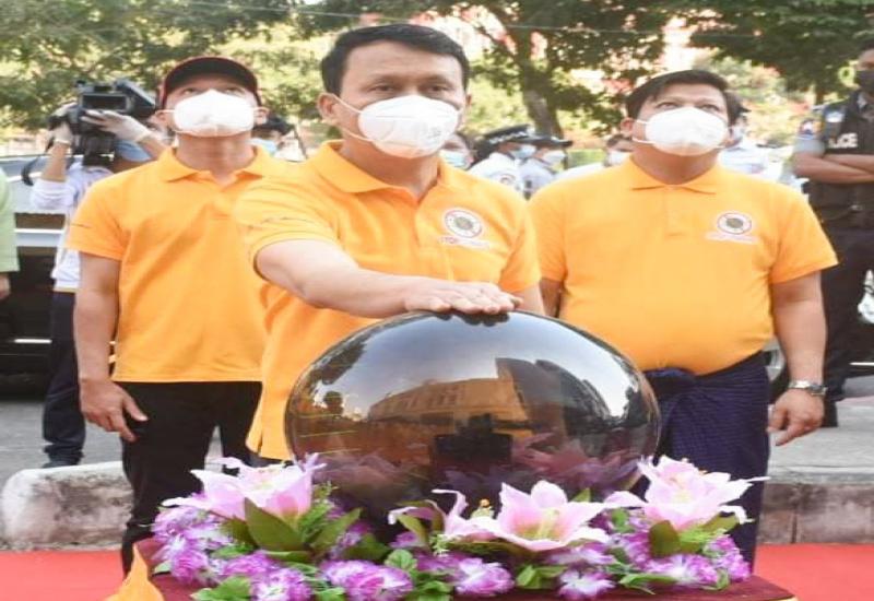 ရန်ကုန်အနောက်ပိုင်းခရိုင်၊ ကမာရွတ်မြို့နယ် အမှတ်(၂)ရပ်ကွက် ပြည်လမ်းအမှတ်(၆၁၅)ရှိ ကမ္ဘောဇဘဏ်ခွဲ(၁)ရှေ့တွင် ယနေ့ နံနက် ၈ နာရီ ၂၅ မိနစ်အချိန်တွင် ကျန်းမာရေး အသိပညာပေး Stop Covid အဝါရောင် Campaign ပညာပေး Billboard အား ဖဲကြိုးဖြတ်ဖွင့်လှစ်ခြင်း အခမ်းအနား ပြုလုပ်ခဲ့ရာ အခမ်းအနားသို့