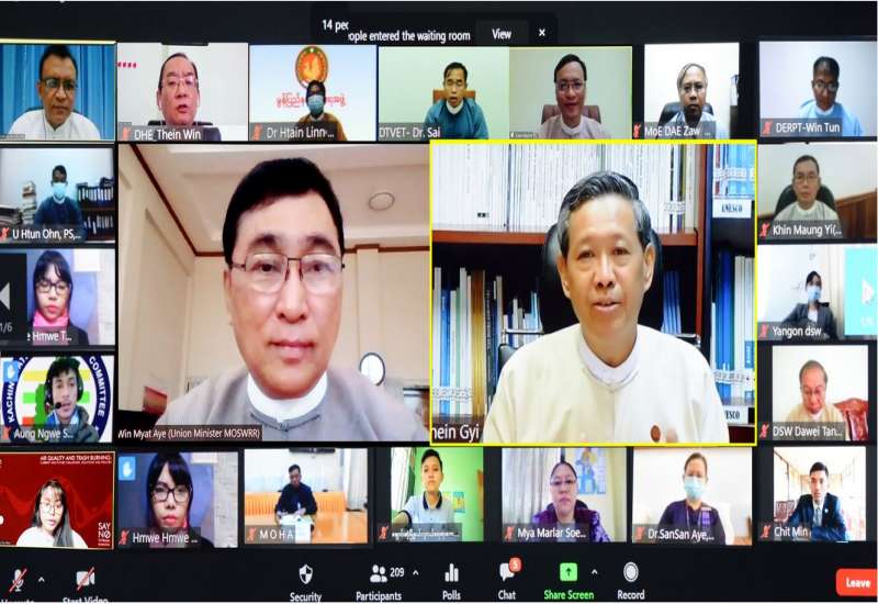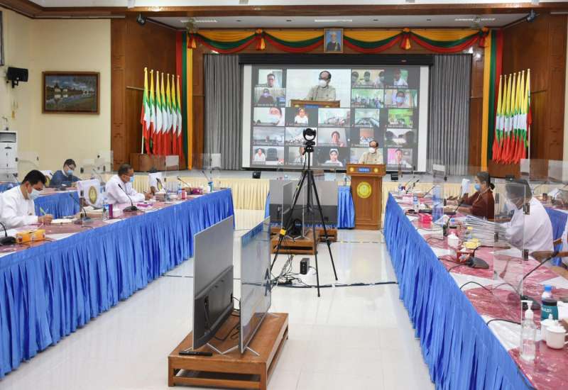 နေပြည်တော်၊ ရုံးအမှတ်(၂၆)၊ စီမံကိန်း၊ ဘဏ္ဍာရေးနှင့် စက်မှုဝန်ကြီးဌာန၊ အစည်းအဝေးခန်းမ၌ ဇန်နဝါရီ ၅ရက်၊ နံနက် (၁၀)နာရီက ကျင်းပပြုလုပ်သည့် ကိုဗစ်−၁၉ ရောဂါကာကွယ်ဆေး ဝယ်ယူနိုင်ရေးနှင့် မြန်မာရွှေ့ပြောင်းလုပ်ငန်းများ ပြည်တွင်းအလုပ်အကိုင် အခွင့်အလမ်းရရှိရေး လုပ်ငန်းညှိနှိုင်းအစည်းအဝေးသို့ ပဲခူးတိုင်းဒေသကြီးအစိုးရအဖွဲ့၊ ဝန်ကြီးချုပ် ဦးဝင်းသိန်းမှ Online Meeting စနစ်ဖြင့် တက်ရောက် ခဲ့သည်။