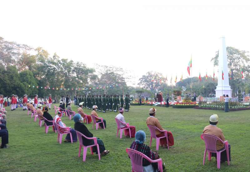 ၂၀၂၁ ခုနှစ်ဇန်နဝါရီလ ၄ ရက်နေ့တွင်ကျရောက်သည့် (၇၃)နှစ်မြောက်လွတ်လပ်ရေးနေ့အလံ တင်အခမ်းအနားနှင့် သဝဏ်လွှာဖတ်ကြားခြင်းအခမ်းအနားကို ကျန်းမာရေးနှင့်အားကစားဝန်ကြီး ဌာန၏ ကိုဗစ်-၁၉ ရောဂါကာကွယ်ရေးလမ်းညွှန်ချက်များနှင့်အညီ စစ်တွေမြို့ ဓညဝတီအားကစား ကွင်း၌ ယနေ့နံနက်ပိုင်းကကျင်းပသည်။