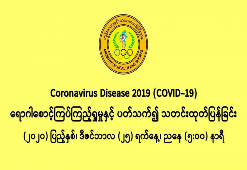 (၂၄-၁၂-၂၀၂၀) ရက်နေ့၊ ည (၈:၀၀) နာရီမှ (၂၅-၁၂-၂၀၂၀) ရက်နေ့၊ ည (၈:၀၀) နာရီ အတွင်း ဓာတ်ခွဲနမူနာ စုစုပေါင်း (၁၉,၅၄၃) ခုအား စစ်ဆေးပြီးစီးခဲ့ရာ COVID-19 ရောဂါ ဓာတ်ခွဲအတည်ပြု လူနာသစ် (၇၅၈) ဦး တွေ့ရှိရပါသည်။