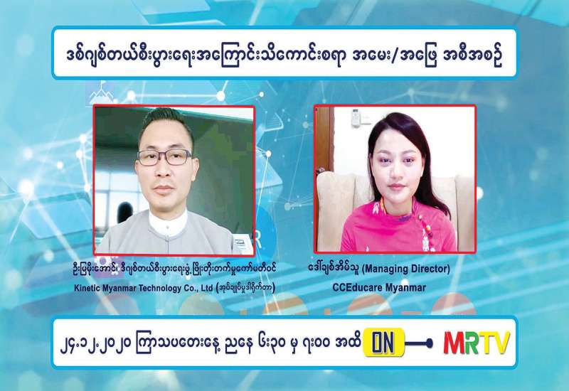 ကိုဗစ် - ၁၉ ရောဂါဖြစ်ပွားမှု ကာလအတွင်း စီးပွားရေးလုပ်ငန်းများ ပြန်လည် လုပ်ကိုင် လည်ပတ်နိုင်ရန် ရည်ရွယ်ချက်ဖြင့် ပြည်သူကို အသိပညာမျှဝေပေး မည့် “ဒစ်ဂျစ်တယ်စီးပွားရေးအကြောင်း သိကောင်းစရာ အမေး/အဖြေ အစီအစဉ်” ကို နိုဝင်ဘာ ၂၅ ရက်မှစ၍ အပတ်စဉ် ဗုဒ္ဓဟူးနှင့် ကြာသပတေးနေ့ များတွင် ညနေ ၆ နာရီခွဲမှ ည ၇ နာရီအထိ မြန်မာ့အသံနှင့် ရုပ်မြင်သံကြားမှ ထုတ်လွှင့်ပြသလျက်ရှိသည်။