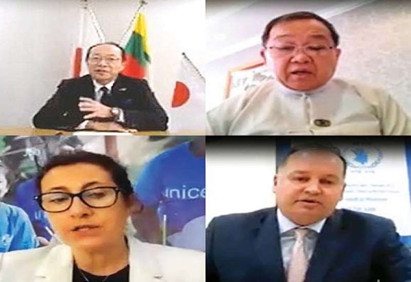 ရင်းနှီးမြှုပ်နှံမှုနှင့် နိုင်ငံခြားစီးပွားဆက်သွယ်ရေးဝန်ကြီးဌာနနှင့် ဂျပန်အပြည်ပြည်ဆိုင်ရာ ပူးပေါင်းဆောင်ရွက်ရေး အေဂျင်စီတို့၏ ကူညီပံ့ပိုးမှု၊ အာဆီယံ-ဂျပန်စင်တာနှင့် မြန်မာသံရုံး (တိုကျိုမြို့)တို့၏ ပူးပေါင်းဆောင်ရွက်မှုတို့ဖြင့် Myanmar Investment Environment Update Webinar ကို ယနေ့နံနက်ပိုင်းတွင် ဂျပန်နိုင်ငံ၌ Virtual စနစ်ဖြင့်ကျင်းပရာ မြန်မာနိုင်ငံ ရင်းနှီးမြှုပ်နှံမှုကော်မရှင်ဥက္ကဋ္ဌ၊ ရင်းနှီးမြှုပ်နှံမှုနှင့် နိုင်ငံခြားစီးပွားဆက်သွယ်ရေးဝန်ကြီးဌာန ပြည်ထောင်စုဝန်ကြီး ဦးသောင်းထွန်း က Video Message ပေးပို့သည်။