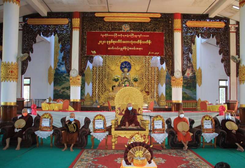 ပဲခူးမြို့၊ ဗုဒ္ဓအသံဓမ္မဗိမာန်တော်ကြီး၌ နိုဝင်ဘာ ၂၆ ရက် နံနက် ၁၀ နာရီက ပဲခူးတိုင်းဒေသကြီး အစိုးရအဖွဲ့မှ ဦးဆောင်၍ စုပေါင်းမဟာဘုံကထိန်ပွဲအခမ်းအနားကို ကျန်းမာရေးနှင့် အားကစား ဝန်ကြီးဌာနမှ ထုတ်ပြန်ထားသည့် ညွှန်ကြားချက်များနှင့်အညီ ကျင်းပခဲ့သည်။