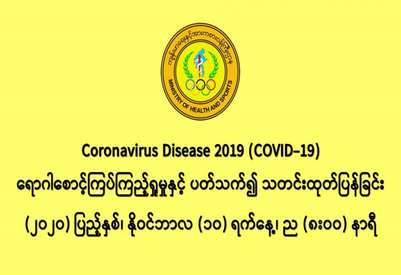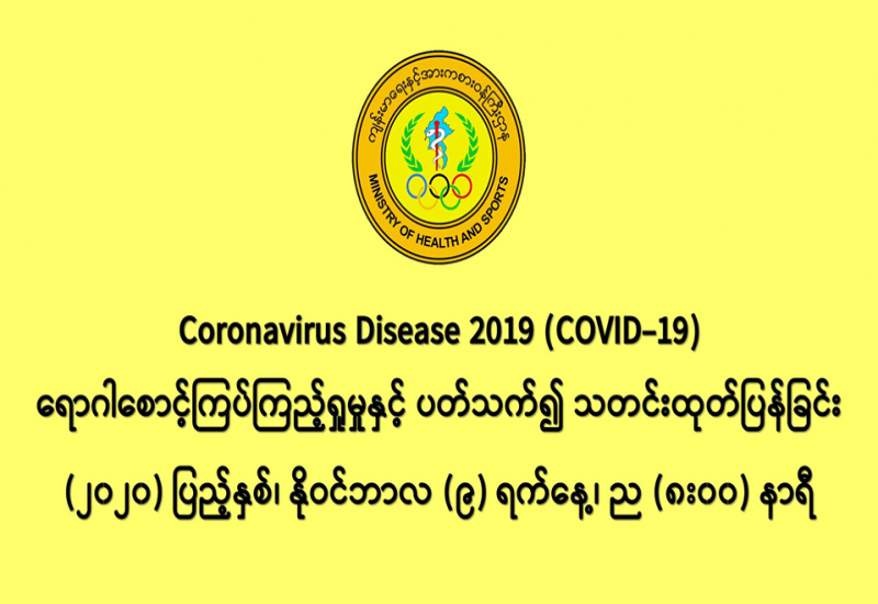 (၈-၁၁-၂၀၂၀) ရက်နေ့၊ ည (၈:၀၀) နာရီမှ (၉-၁၁-၂၀၂၀) ရက်နေ့၊ ည (၈:၀၀) နာရီအတွင်း ဓာတ်ခွဲနမူနာ စုစုပေါင်း (၉,၂၃၀) ခုအား စစ်ဆေးပြီးစီးခဲ့ရာ COVID-19 ရောဂါ ဓာတ်ခွဲအတည်ပြု လူနာသစ်(၅၉၈) ဦး တွေ့ရှိရပါသည်။