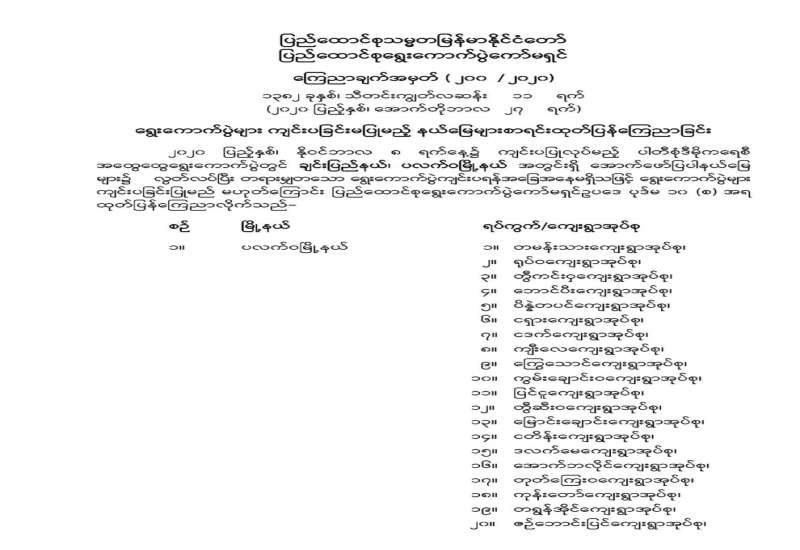 ရွေးကောက်ပွဲများ ကျင်းပခြင်းမပြုမည့် နယ်မြေများစာရင်း ထုတ်ပြန်ကြေညာခြင်း