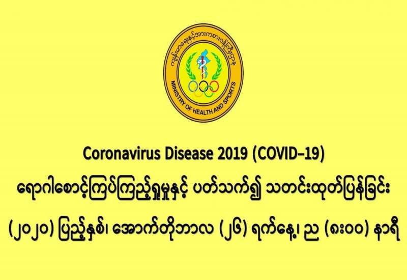 (၂၅-၁၀-၂၀၂၀) ရက်နေ့၊ ည (၈:၀၀) နာရီမှ (၂၆-၁၀-၂၀၂၀) ရက်နေ့၊ ည (၈:၀၀) နာရီ အတွင်း ဓာတ်ခွဲနမူနာ စုစုပေါင်း (၁၂,၄၀၀) ခုအား စစ်ဆေးပြီးစီးခဲ့ရာ COVID-19 ရောဂါ ဓာတ်ခွဲ အတည်ပြု လူနာသစ် (၁,၄၂၆)ဦး တွေ့ရှိရပါသည်။