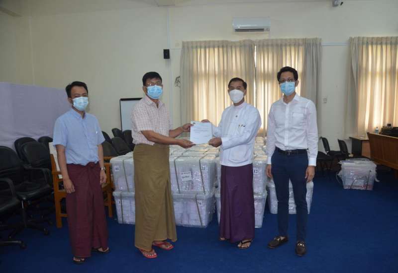 စင်ကာပူရှိ မြန်မာသံရုံးနှင့် တိုကျိုမြို့ရှိ မြန်မာသံရုံးတို့မှ ပေးပို့လာသော ဆန္ဒပြုပြီး ကြိုတင်ဆန္ဒမဲ လက်မှတ်များပါဝင်သည့် ချိတ်ပိတ်ထားသော သံတမန် ချောအိတ်များကို နိုင်ငံခြားရေးဝန်ကြီးဌာနမှ ပြည်ထောင်စုရွေးကောက်ပွဲကော်မရှင်သို့ ယနေ့တွင် လွှဲပြောင်း ပေးအပ်ခဲ့ပြီး ဖြစ်သည်။