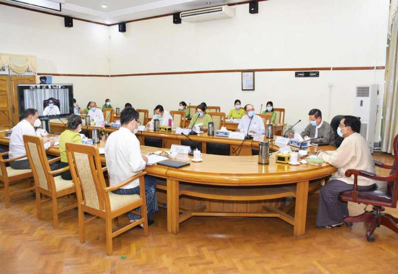 မြန်မာစီးပွားရေးသံမှူးများ၏ ၎င်းတို့ တာဝန်ထမ်းဆောင်နေသည့် နိုင်ငံများနှင့် မြန်မာနိုင်ငံတို့အကြား နှစ်နိုင်ငံကုန်သွယ်မှုမြှင့်တင်ရေး ဆောင်ရွက်နိုင်မှုနှင့် ဆက်လက်ဆောင်ရွက်မည့် အခြေအနေများဆွေးနွေးပွဲကို ယနေ့နံနက် ၁၀ နာရီတွင် စီးပွားရေးနှင့် ကူးသန်းရောင်းဝယ်ရေးဝန်ကြီးဌာန အစည်းအဝေးခန်းမ၌ Zoom Application ဖြင့် ကျင်းပသည်။