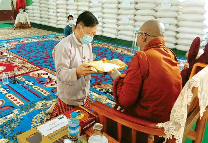 နေပြည်တော် ဇမ္ဗူသီရိမြို့နယ်နှင့် ဒက္ခိဏသီရိမြို့နယ် အတွင်းရှိ ဘုန်းတော်ကြီးကျောင်းများနှင့် သီလ ရှင်ကျောင်းများသို့ ဆွမ်းဆန်တော် ဆက်ကပ်လှူဒါန်းပွဲကို ယနေ့ နံနက် ၉ နာရီတွင် ဇမ္ဗူသီရိမြို့ နန်းဦး ကျောင်းတိုက် ဓမ္မာရုံကြီး၌ ကျင်းပ သည်။