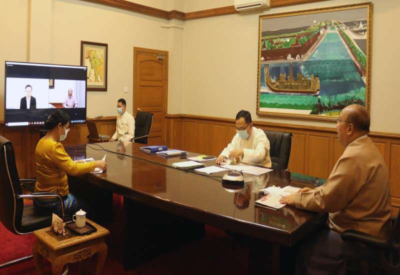 ရင်းနှီးမြှုပ်နှံမှုနှင့် နိုင်ငံခြားစီးပွားဆက်သွယ်ရေးဝန်ကြီးဌာန ပြည်ထောင်စုဝန်ကြီး ဦးသောင်းထွန်း နှင့် စင်ကာပူနိုင်ငံ ကုန်သွယ်ရေးနှင့် စက်မှုဝန်ကြီး Mr. Chan Chun Sing တို့သည် ယနေ့နံနက် ၁၀ နာရီတွင် ဗီဒီယိုကွန်ဖရင့် စနစ်ဖြင့် တွေ့ဆုံဆွေးနွေးသည်။