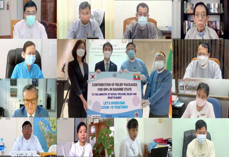 Korea International Cooperation Agency (KOICA) မှ ရခိုင်ပြည်နယ် စစ်တွေ၊ မြောက်ဦးနှင့် ကျောက်ဖြူခရိုင်များရှိ နေရပ်စွန့်ခွာသူများ အတွက် လူသုံးကုန်ပစ္စည်းများ လှူဒါန်းပွဲအခမ်းအနားကို ယနေ့နံနက်ပိုင်းတွင် ဗီဒီယိုကွန်ဖရင့် စနစ်ဖြင့် ကျင်းပသည်။