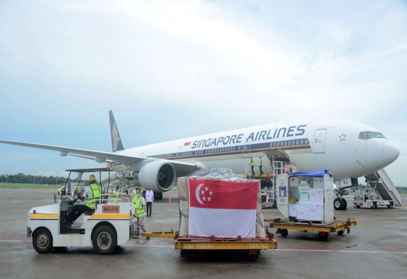 စင်ကာပူနိုင်ငံ အစိုးရနှင့် ပြည်သူများက မြန်မာနိုင်ငံ၏ ကိုဗစ်-၁၉ ရောဂါ ကာကွယ်၊ ထိန်းချုပ်၊ တိုက်ဖျက်ရေးလုပ်ငန်းများ ဆောင်ရွက်ရာတွင် အသုံးပြုရန်အတွက် ကိုဗစ်-၁၉ ရောဂါ စမ်းသပ်ကိရိယာများနှင့် ကျန်းမာရေးဆိုင်ရာ အထောက်အကူပြုပစ္စည်းများ ပေးအပ်လှူဒါန်းသည့် အခမ်းအနားကို ယနေ့ နံနက်ပိုင်းက ရန်ကုန်အပြည်ပြည်ဆိုင်ရာ လေဆိပ်၌ ပြုလုပ်သည်။