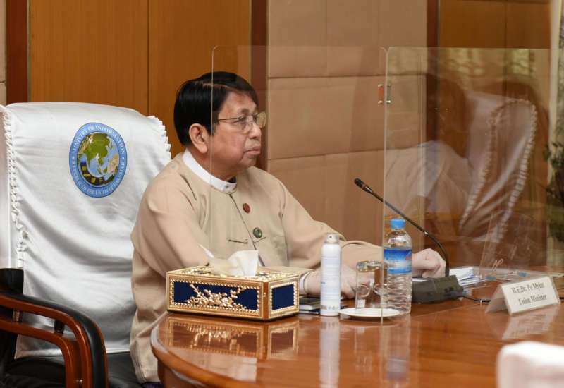 ၂၀၂၁-၂၀၂၂ ပညာသင်နှစ်အတွက် အခြေခံပညာ ကျောင်းသုံးစာအုပ်များ အရည်အသွေးပြည့်မီစွာ ပုံနှိပ်၊ ထုတ်လုပ်၊ ဖြန့်ချိနိုင်ရေးအတွက် ကျောင်းသုံးစာအုပ်များ ရိုက်နှိပ် ဖြန့်ချိရေးကော်မတီ လုပ်ငန်းညှိနှိုင်း အစည်းအဝေး(၄/၂၀၂၀) ကို ယနေ့နံနက် ၁၀ နာရီတွင် ဗီဒီယိုကွန်ဖရင့်စနစ်ဖြင့် ကျင်းပရာ ပြန်ကြားရေးဝန်ကြီးဌာန ပြည်ထောင်စုဝန်ကြီး ဒေါက်တာဖေမြင့်၊ ပညာရေးဝန်ကြီးဌာန ပြည်ထောင်စုဝန်ကြီး ဒေါက်တာ မျိုးသိမ်းကြီး၊ ပြန်ကြားရေးဝန်ကြီးဌာန ဒုတိယဝန်ကြီး ဦးအောင်လှထွန်း၊ ပညာရေးဝန်ကြီးဌာန ဒုတိယ ဝန်ကြီး ဦးဝင်းမော်ထွန်း၊ ဌာနဆိုင်ရာအကြီးအကဲများ၊ ကျောင်းသုံးစာအုပ်များ ရိုက်နှိပ် ဖြန့်ချိရေး ကော်မတီအဖွဲ့ဝင်များက သက်ဆိုင်ရာဝန်ကြီးဌာနများမှ တစ်ဆင့် ချိတ်ဆက် ပါဝင် တက်ရောက်ကြသည်။