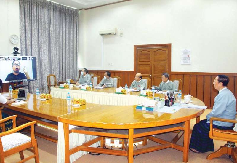 ပဲခူးတိုင်းဒေသကြီးအစိုးရအဖွဲ့ရုံး၊ အစည်းအဝေးခန်းမ၌ ယမန်နေ့ မွန်းလွဲ ၁ နာရီ ၃၀ မိနစ် အချိန်က ပဲခူးတိုင်းဒေသကြီး ကိုဗစ်-၁၉ ကာကွယ်ရေးနှင့် အရေးပေါ်တုံ့ပြန်ရေးကော်မတီ လုပ်ငန်းညှိနှိုင်း အစည်းအဝေးကို Video Conferencing စနစ်ဖြင့် ကျင်းပပြုလုပ်သည်။
