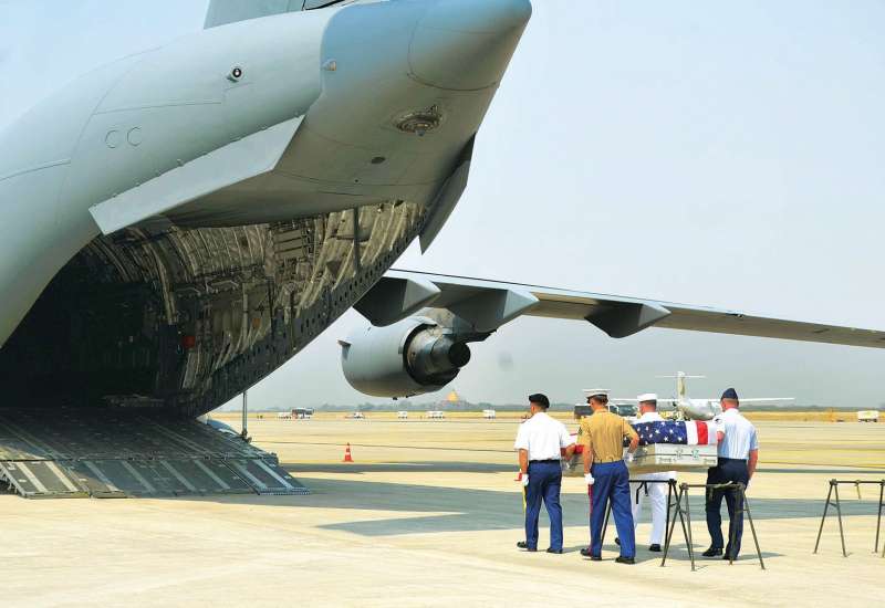 မြန်မာနိုင်ငံ စစ်ကိုင်းတိုင်းဒေသကြီး ဆားလင်းကြီးဒေသတစ်ဝိုက်တွင် မကြာသေးမီက ရှာဖွေတွေ့ရှိခဲ့သော ဒုတိယကမ္ဘာစစ်အတွင်းက ကျဆုံးပျောက်ဆုံး ကျန်ရစ်ခဲ့သော အမေရိကန်စစ်သည်များ၏ ဖြစ်နိုင်‌ခြေရှိသော လူသားရုပ်ကြွင်းများကို ယနေ့ မွန်းလွဲ ၁ နာရီခွဲက မန္တလေးအပြည်ပြည်ဆိုင်ရာလေဆိပ်တွင် ဂုဏ်ပြု အခမ်း အနားကျင်းပ၍ အမေရိကန်လေတပ်မှ C-17 အကြီးစား သယ်ယူပို့ဆောင်ရေးလေယာဉ်ကြီးဖြင့် အမေရိကန် နိုင်ငံသို့ ဒုတိယအကြိမ်အဖြစ် ပြန်လည်သယ်ဆောင်သွားခဲ့သည်။