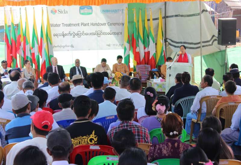 ရန်ကုန်တိုင်းဒေသကြီး ဒလမြို့နယ်၌ ဒေသခံပြည်သူများ နှစ်စဉ်နွေရာသီကာလအတွင်း ရေရှားပါးမှုမှ ကင်းဝေးစေရေးနှင့် သောက်သုံးရေ ရရှိစေရေးအတွက် ရည်ရွယ်၍ ဆွီဒင်နိုင်ငံ Swedish International Development Agency (SIDA) ၏ ထောက်ပံ့လှူဒါန်းငွေဖြင့် UN-Habitat နှင့် ရန်ကုန်မြို့တော်စည်ပင်သာယာရေး ကော်မတီတို့ပူးပေါင်း အကောင်အထည်ဖော် ဆောင်ရွက်သည့် ရေသန့်စက်ရုံသစ် ဖွင့်ပွဲအခမ်းအနားကို ယမန်နေ့ နံနက် ၉ နာရီက ဒလမြို့နယ် မှော်စက်ရပ်ကွက် ပုလဲလမ်းရှိ အဆိုပါ ရေသန့်စက်ရုံသစ်ရှေ့တွင် ကျင်းပခဲ့သည်။