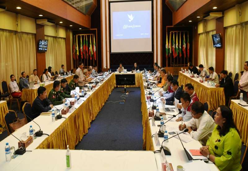 (၈)ကြိမ်မြောက် တစ်နိုင်ငံလုံးပစ်ခတ်တိုက်ခိုက်မှုရပ်စဲရေး သဘောတူစာချုပ် အကောင်အထည်ဖော်မှု ဆိုင်ရာ ညှိနှိုင်းအစည်းအဝေး (JICM) အစည်းအဝေးဆုံးဖြတ်ချက်များ အကောင်အထည်ဖော်ရေး အတွက် အစိုးရနှင့် တစ်နိုင်ငံလုံးပစ်ခတ် တိုက်ခိုက်မှု ရပ်စဲရေး သဘောတူစာချုပ် (Nationwide Ceasefire Agreement-NCA) လက်မှတ်ရေး ထိုးထားသည့် တိုင်းရင်းသားလက်နက်ကိုင် အဖွဲ့အစည်းများ (NCA-S EAO) ၏ နှစ်ဖက် အလုပ်အဖွဲ့ညှိနှိုင်း အစည်းအဝေးကို ယနေ့နံနက် ၁၀ နာရီတွင် ရန်ကုန်မြို့ ရွှေလီလမ်းရှိ အမျိုးသားပြန်လည်သင့်မြတ်ရေးနှင့် ငြိမ်းချမ်းရေးဗဟိုဌာန (NRPC) တွင် ကျင်းပသည်။