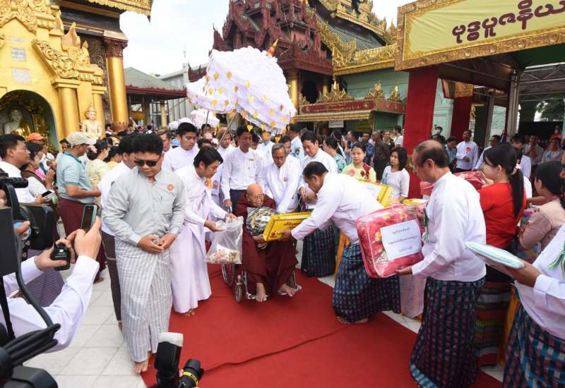 လူမှု၀န်ထမ်း၊ ကယ်ဆယ်ရေးနှင့် ပြန်လည်နေရာချထားရေး၀န်ကြီးဌာန ပြည်ထောင်စု၀န်ကြီး ဒေါက်တာ၀င်းမြတ်အေးသည် ယနေ့နံနက်ပိုင်းတွင် ဖျာပုံမြို့ရှိ ကန်တော်မင်္ဂလာ ဘိုးဘွားရိပ်သာ၌ ဘိုးဘွား(၃၅) ဦးအတွက် အလှူငွေ ကျပ် (၅)သိန်း၊ စောင်များနှင့် အခင်းများ ပေးအပ်လှူဒါန်းသည်။