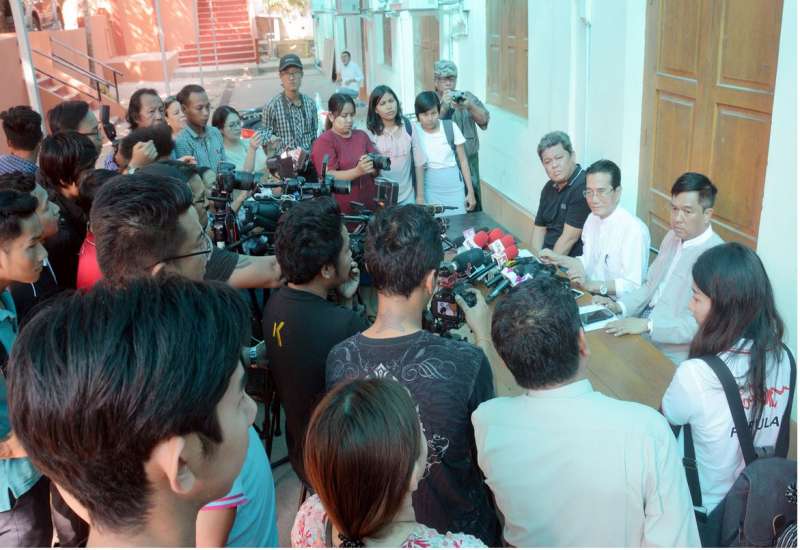 ဆွေးနွေးညှိနှိုင်းပွဲအပြီးတွင် မြန်မာနိုင်ငံ ရုပ်ရှင်အစည်းအရုံးနာယက ဒါရိုက်တာ ပန်းချီဦးစိုးမိုး၊ Paradiso Ciremas Co.,Ltd မှ CEO ဦးတင်မောင်ဝင်းနှင့် ဥက္ကဋ္ဌ ဦးလွင်မိုးတို့က စာနယ်ဇင်း ရှင်းလင်းပွဲကို ဆက်လက်ကျင်းပခဲ့သည်။