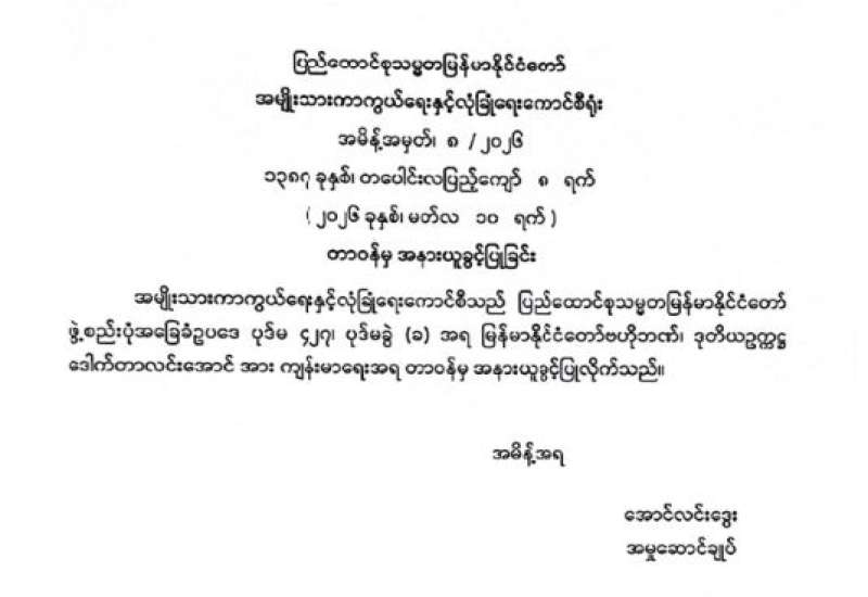 ရန်ကုန်မြို့နှင့် မန္တလေးမြို့အတွက် ရည်ညွှန်းလက်ကားဈေးနှုန်းများနှင့် ပြည်ထောင်စုနယ်မြေ နေပြည်တော်၊ တိုင်းဒေသကြီး/ပြည်နယ် မြို့တော်များအတွက် ရည်ညွှန်းလက်လီဈေးနှုန်းများ