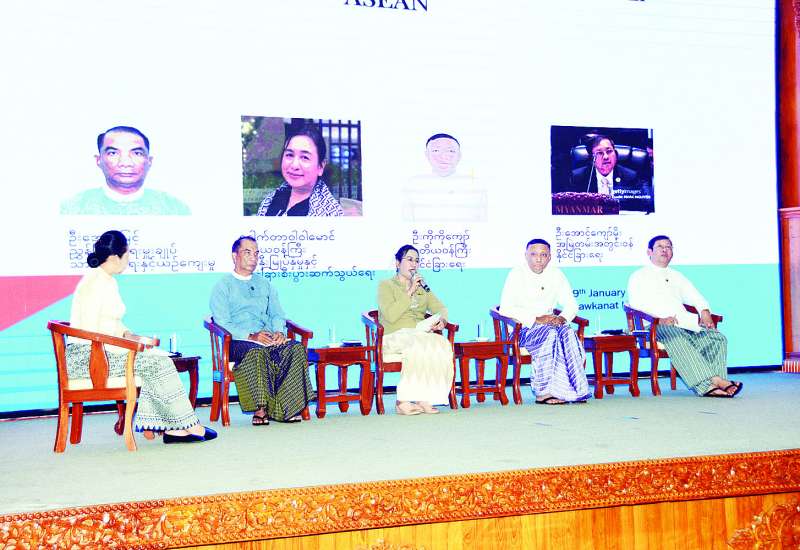 “အာဆီယံအတွင်း မြန်မာနိုင်ငံ၏အကျိုးစီးပွားနှင့် စွမ်းရည်မြှင့်တင်ရေး” ဆိုင်ရာ အလုပ်ရုံဆွေးနွေးပွဲကို ဇန်နဝါရီ ၉ ရက်မှ ၁၀ ရက် အထိ နိုင်ငံခြားရေးဝန်ကြီးဌာန လောကနတ်ခန်းမ၌ ကျင်းပပြုလုပ်လျက်ရှိသည်။