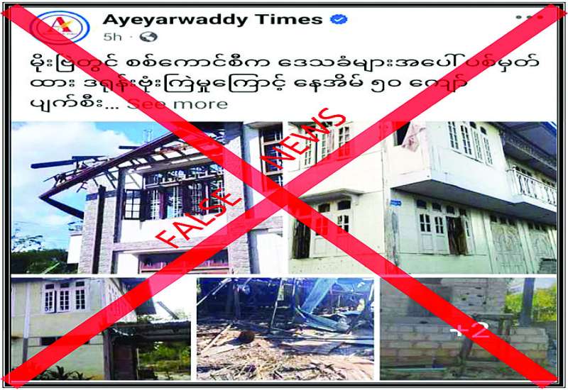 ရှမ်းပြည်နယ် ကရင်နီနယ်စပ် မိုးဗြဲမြို့တွင် လုံခြုံရေးတပ်ဖွဲ့ဝင်များကဒရုန်းများဖြင့် ဗုံးကြဲမှုကြောင့် နေအိမ် ၅၀ ကျော် ပျက်စီးခဲ့ကြောင်း တရားမဝင်ပြည်ဖျက်မီဒီယာများက မဟုတ်မမှန် သတင်းတု သတင်းအမှားများ ရေးသားဖြန့်ဝေလျက်ရှိကြောင်း တွေ့ရသည်။