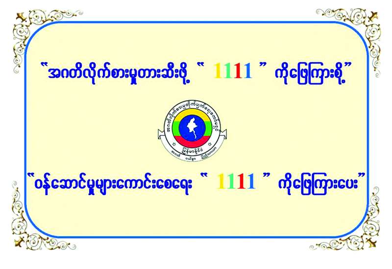 ၁။ ပြည်သူ့စစ်မှုထမ်းဆင့်ခေါ်ရေးဆိုင်ရာ ကိစ္စရပ်များနှင့်စပ်လျဉ်း၍ သိရှိလိုသည်များကို စုံစမ်းမေးမြန်းရန်နှင့် သတင်းပို့ရန်တို့အတွက် တိုင်းဒေသကြီးနှင့် ပြည်နယ်အသီးသီးရှိ ပြည်သူ့စစ်မှုထမ်းဆင့်ခေါ်ရေးအဖွဲ့များ၏ အောက်ပါဖုန်းနံပါတ်များသို့ ရုံးချိန်အတွင်း ဆက်သွယ်နိုင်ပါကြောင်း ထုတ်ပြန်အပ်ပါသည်-