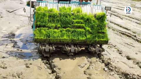 အောင်ချမ်းသာကျေးရွာတွင် ကောက်စိုက်စက်ဖြင့်စိုက်ပျိုးခြင်းကွင်းသရုပ်ပြပွဲကျင်းပ