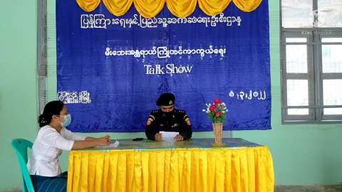 ကြံခင်းမြို့ လူထုအခြေပြုဗဟိုဌာန (Community Centre) ခန်းမတွင် မီးဘေးအန္တရာယ်ကြိုတင်ကာကွယ်ရေးအသိပညာပေး Talk Show ကျင်းပပြုလုပ်