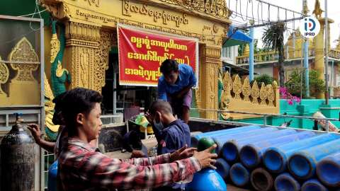 ကြို့ပင်ကောက်မြို့ ကိုဗစ်-၁၉ ကုသရေးစင်တာများတွင် အောက်ဆီဂျင်ရှူနေရသူလူနာ (၉) ဦး အတွက် တစ်ရက်လျှင် (၄၀) လီတာအိုး (၁၅)လုံးသုံးစွဲနေ